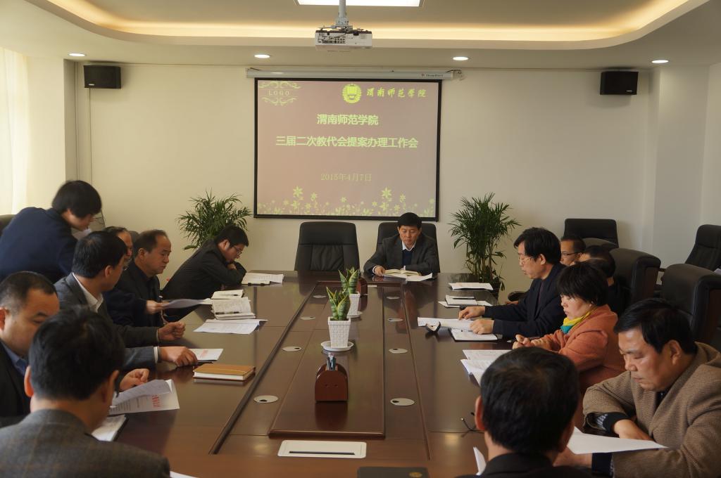 校党政办主任、提案工作委员会主任韩小卫对三届二次教代会提案办理工作进行了安排,对提案的落实办法、回复时间等提出了具体要求。三届二次教代会期间,共收到代表提案42件,主要涉及教学建设与教学管理、队伍建设、科研管理、收入分配、基建与后勤等5个方面。提案工作委员会根据《渭南师范学院教职工代表大会提案工作实施细则》,对提案进行了认真梳理、审查后,对符合条件的35件提案进行了立案。韩小卫结合2014年提案办理工作存在的问题,对今年的提案办理工作提出了更加明确的要求。要求各主办单位在提案办理过程中要及时与提案人联系,了解提案具体内容,以便于提案办理工作顺利开展;对应当解决而且能够解决的,要提出解决方案并尽快组织落实;应当解决但暂时无法解决的,要说明原因,并将提案办理纳入未来工作计划;应将提案落实情况及时答复提案人,对无法按提案人的期望解决的,要和提案人进行沟通,做好解释说明工作。各单位对提案办理的具体意见和进度,要及时请示和汇报分管校领导,使提案办理工作更加科学规范。教代会提案工作委员会将在本学期末组织召开提案落实情况汇报会,11月份对提案办理情况进行终期检查。