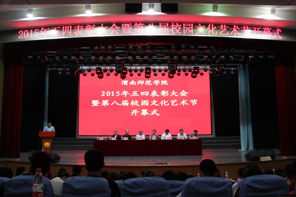 5月4日,我校2015年“五四”表彰大会暨第八届校园文化艺术节开幕式在陶然楼演艺厅隆重举行。校党委书记张金安,校长丁德科,校党委副书记赵伏友,著名文化学者王戈,校党委委员、组织部部长杨小渭,党委宣传部部长杨利民,学工部部长、学生处处长王俊安,校团委成员、各二级学院团总支书记和各二级学院学生代表350余人参加表彰大会。活动由校团委书记姚明亮主持。