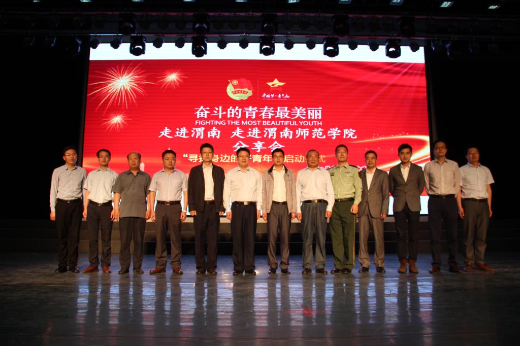 为深入开展“争做向上向善好青年 争做文明守法好网民”主题宣传教育实践活动,5月6日,“奋斗的青春最美丽”走进渭南、走进渭南师范学院分享会在我校陶然楼演艺厅举行。共青团陕西省委书记李豫琦、校党委书记张金安、校长丁德科、校党委副书记赵伏友、共青团渭南市委书记王宏强、团省委宣传部副部长李夏颖,团市委副书记赵超、张晓峰,校新闻中心主任王双明、校团委书记姚明亮及二级学院团总支、团委成员及300余名学生代表参加本次分享会。