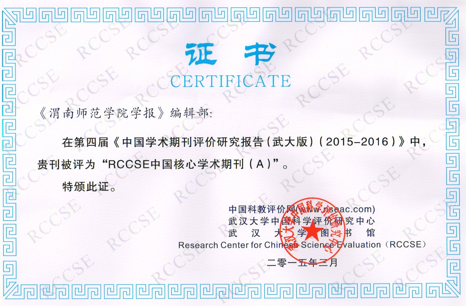 日前,由武汉大学中国科学评价研究中心(RCCSE)、武汉大学图书馆、中国科教评价网共同完成推出的第4版《RCCSE中国学术期刊评价研究报告——权威、核心学术期刊排行榜》公布。《渭南师范学院学报》在第四届《中国学术期刊评价研究报告(武大版)(2015—2016)》中被评为“RCCSE中国核心学术期刊(A)”,这是《渭南师范学院学报》首次进入RCCSE中国核心学术期刊(A)名录。