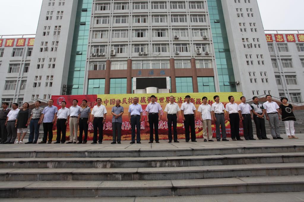 在中国抗日战争胜利纪念日暨世界反法西斯战争胜利纪念日即将到来之际,9月2日上午,渭南师范学院在厚德楼前举办了“纪念中国人民抗日战争暨世界反法西斯战争胜利70周年”师生签名活动。