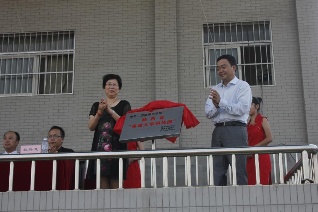 潘洁、丁德科为获得陕西省科技厅、教育厅认定的我校“陕西省大学科技园”揭牌。
