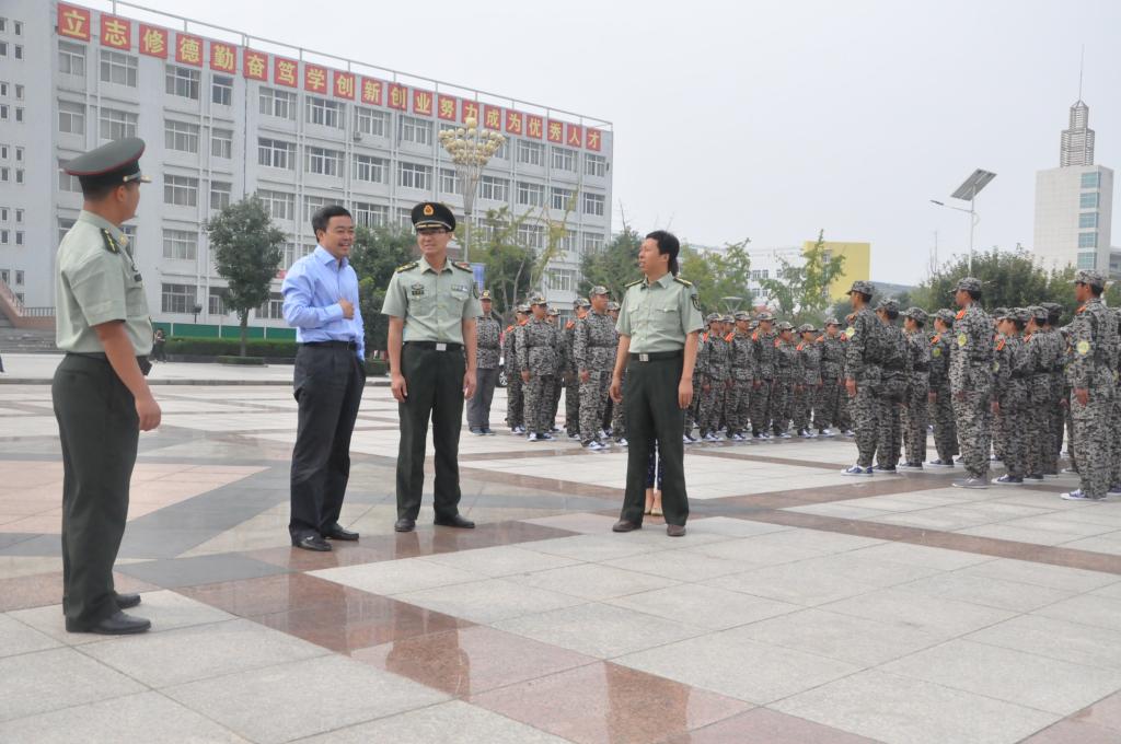 9月16日上午,院长丁德科在学生军训团团长霍伟华、军训团政委、人民武装部部长崔启等陪同下,来到军训团训练场地检查军训工作。