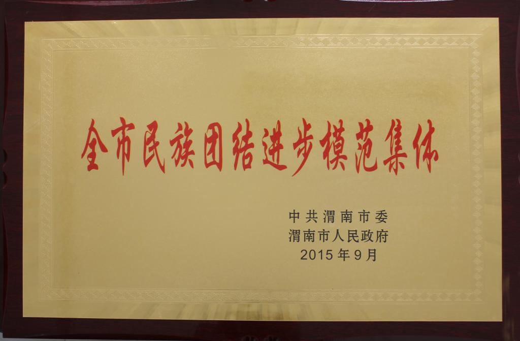9月17日上午,中共渭南市委、渭南市人民政府在渭南光明酒店召开了市委民族工作会议暨全市民族团结进步表彰大会。出席大会的领导有中共渭南市市委副书记、政法委书记王春阳,市委常委、副市长唐代治,副市长王晓军,市政协副主席徐月凤;各县(市、区)委领导;市民族宗教工作分管领导;驻渭各高校分管统战工作领导;各县(市、区)统战部长。受表彰的模范集体和模范个人等120多人参会,我校作为受表彰的民族团结进步模范集体代表参加会议并上台领奖。
