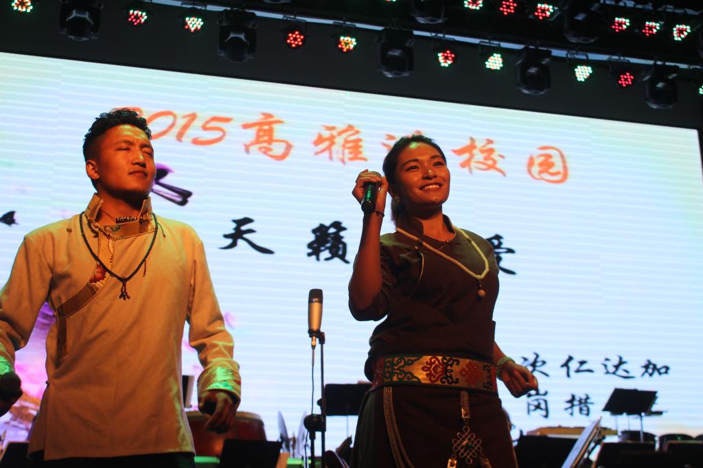 活动进行中,为了进一步加强校际之间艺术教育的交流、借鉴和学习。我校大学生艺术团的藏族学生次仁达加、拉姆以一曲《天籁之爱》表达出少数民族同胞们对祖国的祝福,以天籁之声传递对祖国母亲无限深情,以饱满地情感投入激起现场师生们颗颗爱国之心,也拉开整个艺术演出的序幕;岗措、宋福见以一曲《天上的云儿》既表达祖国边疆那拉提草原的无限美好的风光,也表达出游子们的浪漫而浓郁思乡情怀,体现了人们对家乡的无限眷恋;青年教师刘鑫将一曲《鸿雁》演绎到了一种最美,诠释了人们美丽草原的深深思念与感恩,对家乡的思念和和向往,对祖国的热爱和祝福。我校大学生艺术团也曾先后赴爱尔兰、西藏、青海玉树、宁夏等地交流演出的,曾荣获教育部大学生艺术展演优秀组织奖等殊荣。