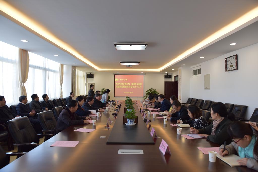 会上,程书强对各位领导和专家到我校指导工作表示欢迎,并从教学、科研和学科建设等方面对学校情况进行了介绍;教务处副处长张萍从学校语言文字工作基本情况、普通话培训测试管理、语言文字专题活动、语言文字规范化建设和语言文字工作取得的成绩与存在问题等五个方面汇报了我校语言文字工作。