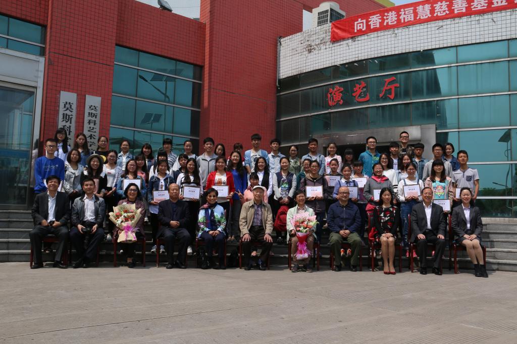 随后,基金会代表与获奖学生合影并进行了亲切的座谈。座谈会上,学生踊跃发言,纷纷表达了对香港福慧慈善基金会及学校的感激之情,先后介绍了自己的学习成绩及综合表现情况,并就学习方法、社会实践活动经验、生活感悟等向基金会代表进行了汇报。
