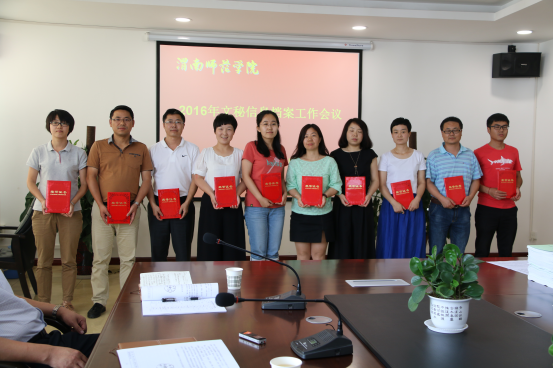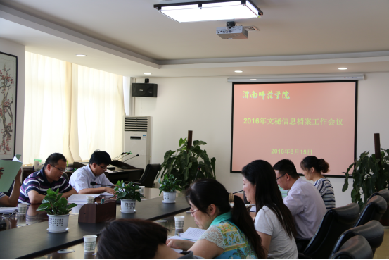 6月15日下午,厚德楼四楼大会议室召开2016年文秘信息档案工作会议,校长助理韩小卫、党政办公室副主任曹强、党政办公室主任助理刘永勤、各单位文秘信息档案工作负责人出席会议。会议由党政办秘书科科长郭石磊主持。