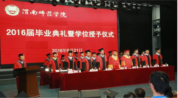 大会在雄壮的中华人民共和国国歌声中拉开帷幕。副院长王君龙教授宣读了2016届毕业生毕业资格审核、学位授予资格审核结果文件,2016届继续教育学院毕业生学位授予情况。