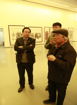 2017年1月5日上午,中国美术家协会主席、渭南师范学院特邀艺术顾问刘大为,著名艺术家、知名学者杨建果一行,在王俊杰教授陪同下兴致勃勃的参观了由渭南师范学院、俄罗斯莫斯科国立师范大学、泰国博仁大学主办的“使命•铁肩•热土——丝绸之路国家高校师生美术作品展”。