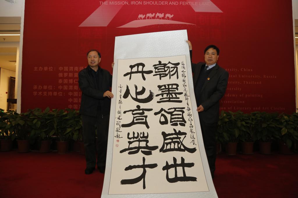 1月3日上午9:00,由渭南师范学院、俄罗斯莫斯科国立师范大学、泰国博仁大学主办的“使命·铁肩·热土——丝绸之路国家高校师生美术作品展”在北京中国国家画院盛大开幕,1月7日圆满闭幕。我校校友会特邀杰出校友、校友会名誉会长、国家工商行政管理总局原常务副局长韩新民等数十位在京工作的各界、各届、各类别校友代表出席开幕式并参观画展。