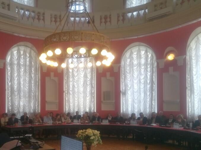 莫斯科时间4月26日下午2时,来自全俄罗斯师范高校的25位专家代表在莫斯科国立师范大学学术会议厅举行编辑委员会会议。会议经过认真严肃讨论,一致同意聘请渭南师范学院丁德科教授为《科学与学校》杂志外籍编委。