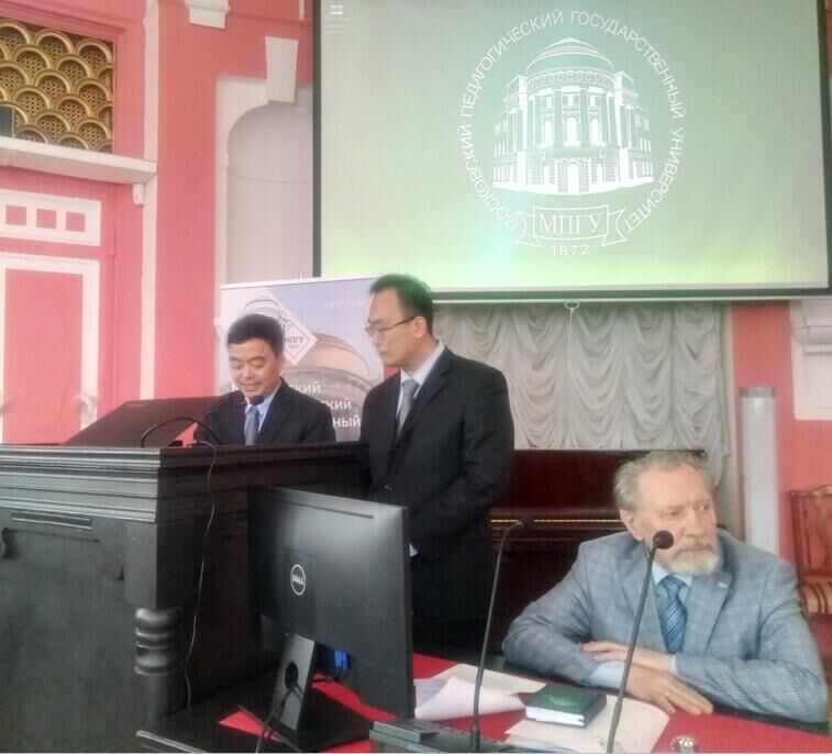 丁德科教授发表演讲,特别对编委会聘请他担任《科学与学校》杂志编委表示感谢。他讲到“一带一路”建设与发展,取决于人才。培养人才的教育合作,特别是高等教育合作,是人才培养的关键。而教师教育,也就是师范教育,无疑是重要并且必须先行的举措。为此,中国渭南师范学院和俄罗斯莫斯科国立师范大学联合创办了莫斯科艺术学院,培养具有宽广国际视野、良好人文素养和创新能力强的高素质艺术人才和教育人才。这是建立教育共同体,特别是教师教育共同体的切实作为。丁德科教授表示,作为莫斯科国立师范大学荣誉教授,受聘《科学与学校》杂志编委,作为师范高校大学生和研究生毕业答辩委员会专家,他会切实履行职责,为两校及中俄合作办学尽职尽责。