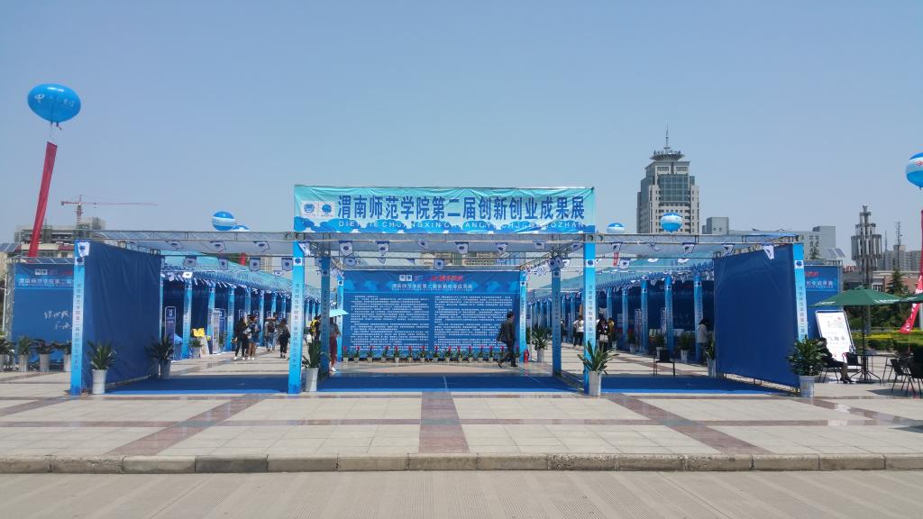 5月8日,渭南师范学院第二届创新创业教育成果展在学校朝阳校区名人广场举办。