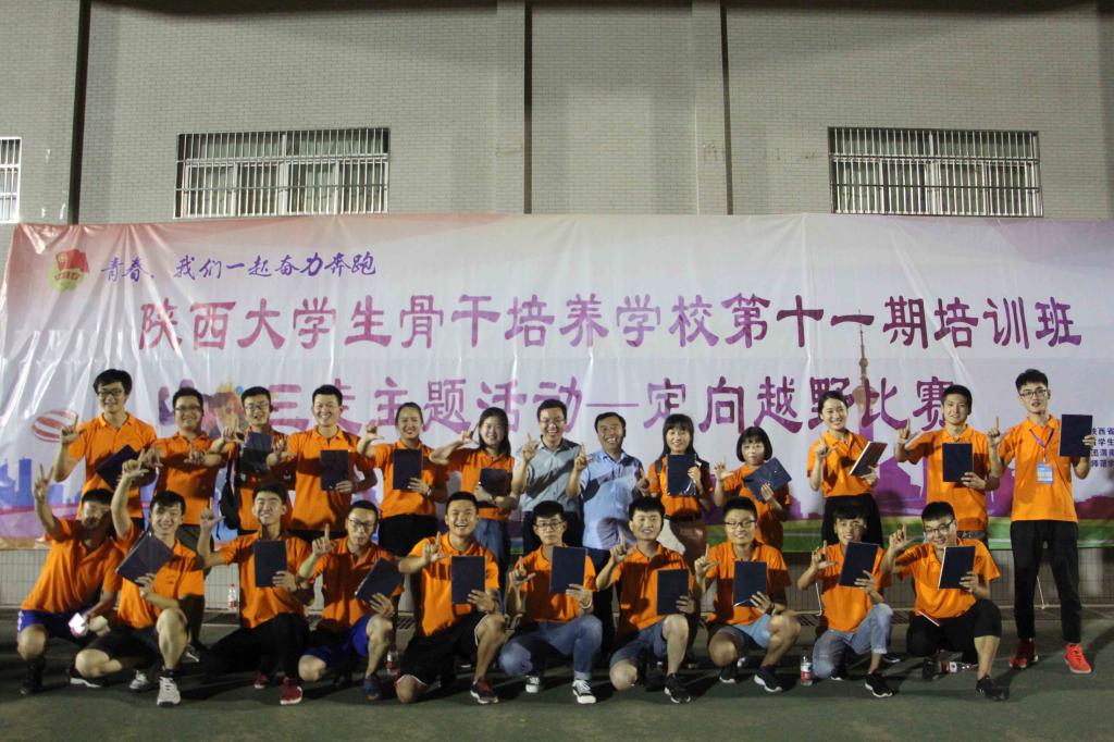 晚上,在田径场我校体育学院团总支承办了全体学员《青春我们一起奋力奔跑——定向越野比赛》“三走”主题活动。校团委副书记姚明亮代表学校出席了活动并做出重要讲话,他对全省各校同学们的到来表示热烈的欢迎,学校团委会为培训班做好有力保障,希望同学们能在渭南师范学院度过充实快乐的学习时光。活动及比赛加强了团队之间的凝聚力和荣誉感,为培训班在我校成功举办奠定了基础。