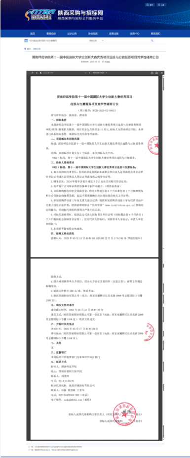 渭南师范学院第十一届中国国际大学生创新大赛优秀项目选拔与打磨服务项目竞争磋商公告