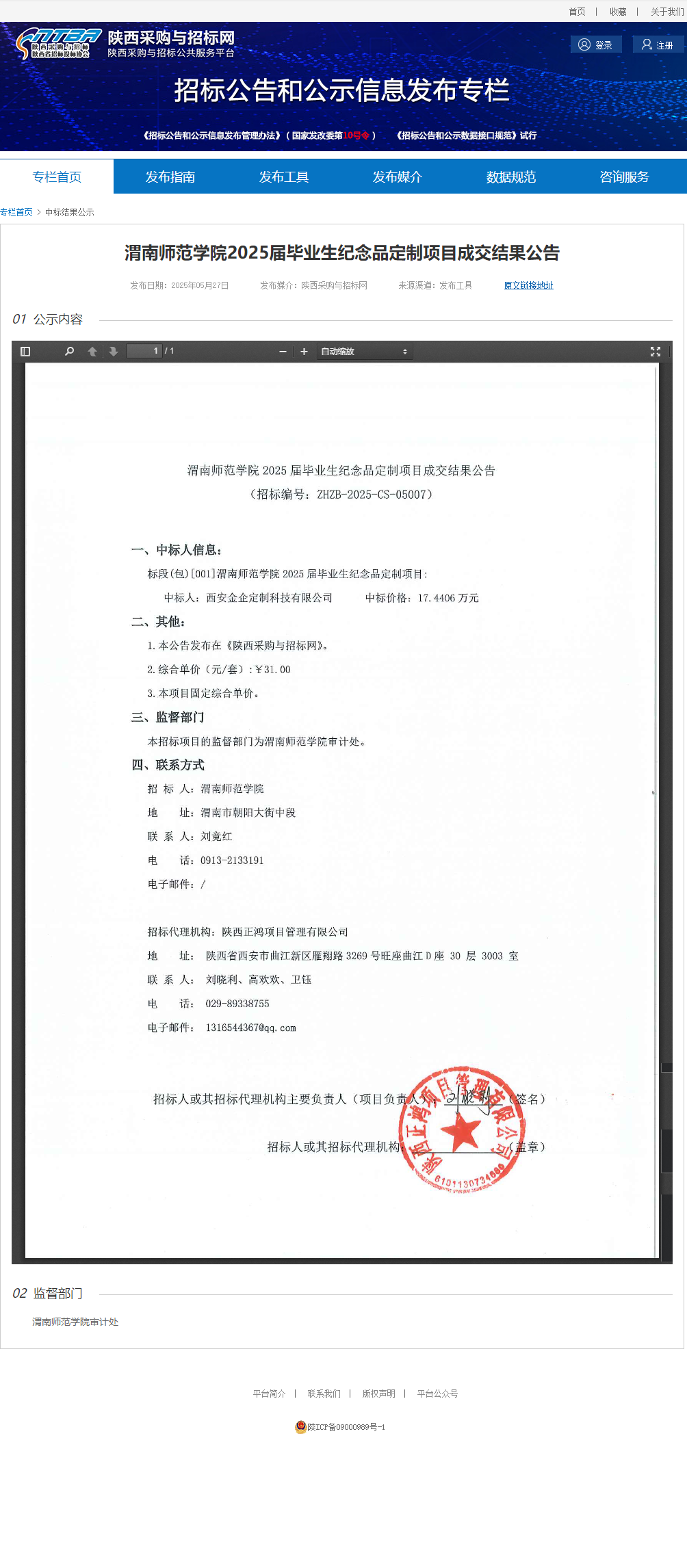 渭南师范学院2025届毕业生纪念品定制项目成交结果公告
