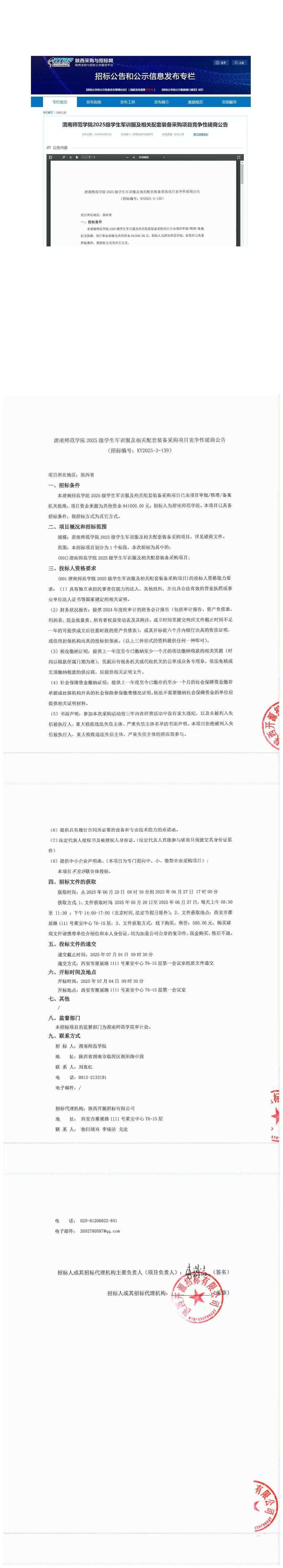 渭南师范学院2025级学生军训服及相关配套装备采购项目竞争性磋商公告