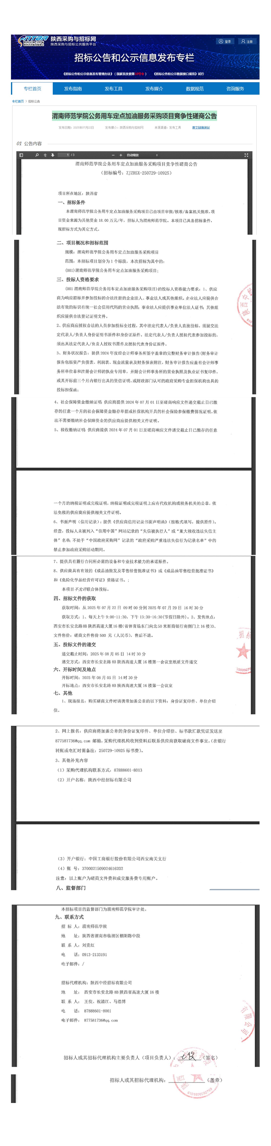 渭南师范学院公务用车定点加油服务采购项目竞争性磋商公告