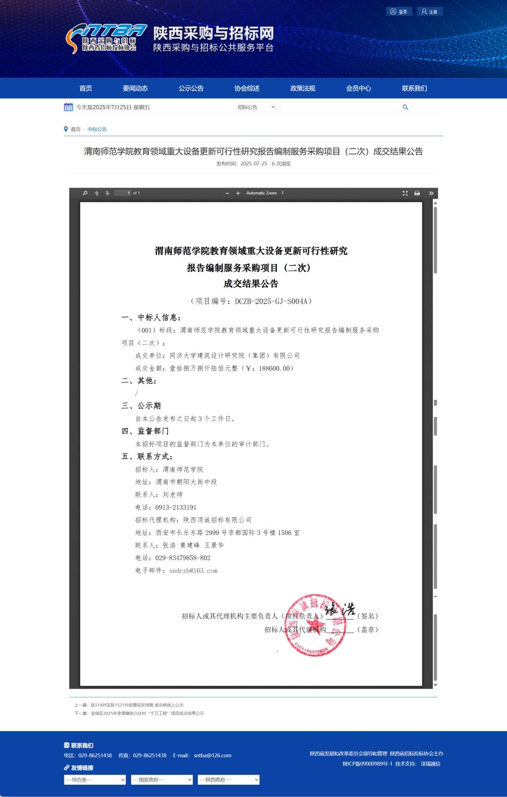 渭南师范学院教育领域重大设备更新可行性研究报告编制服务采购项目(二次)成交结果公告