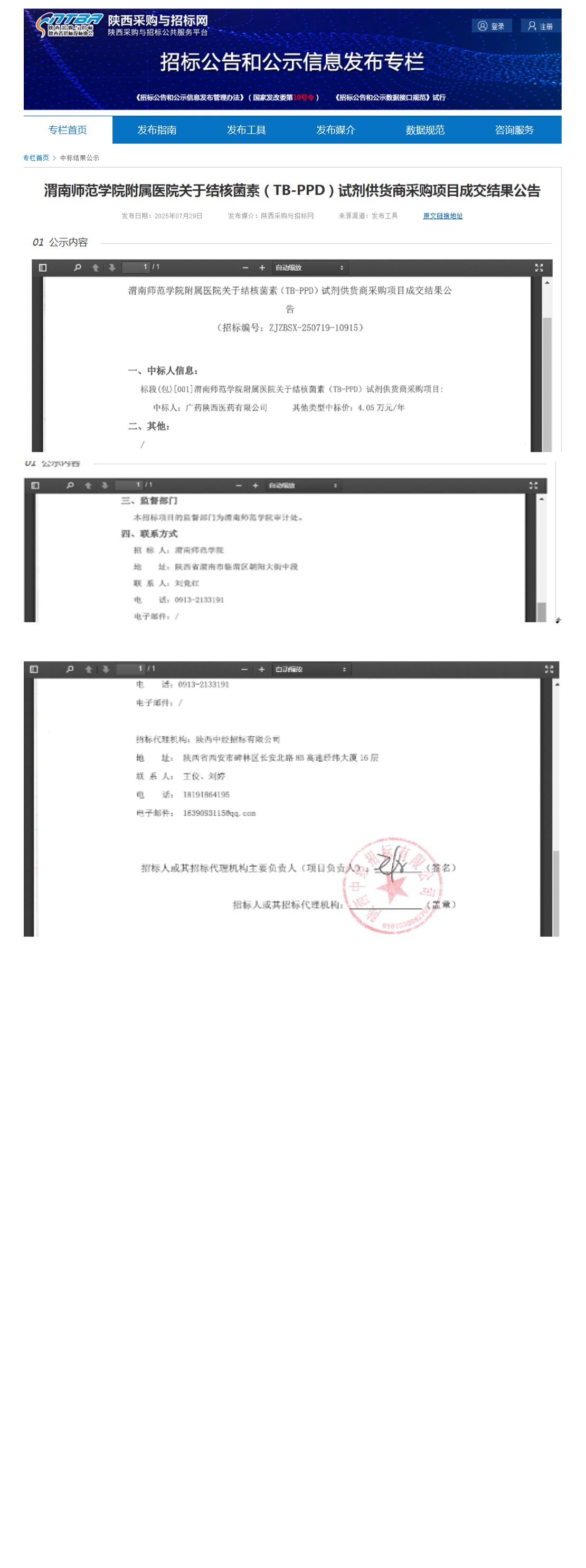 渭南师范学院附属医院关于结核菌素(TB-PPD)试剂供货商采购项目成交结果公告
