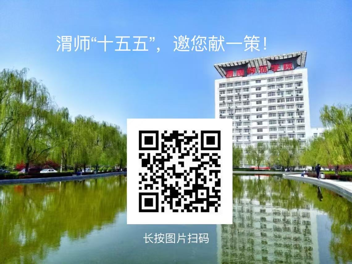 1.线上参与。使用手机扫描“渭南师范学院‘十五五’规划建言献策”征集二维码,在线填写提交;系统论述的意见建议文稿可发送电子邮件至邮箱:wnsyfgc@126.com。