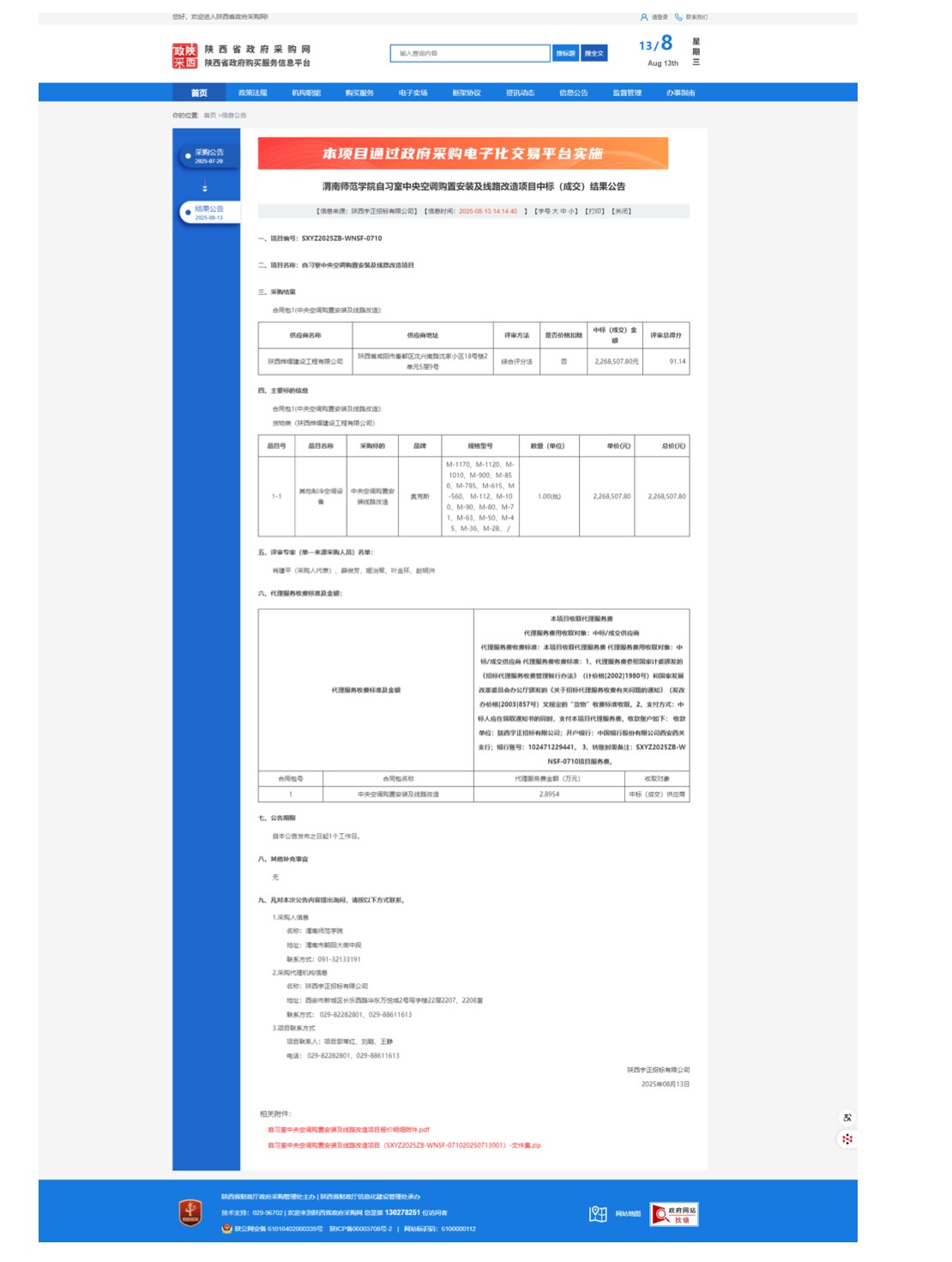 渭南师范学院自习室中央空调购置安装及线路改造项目中标(成交)结果公告