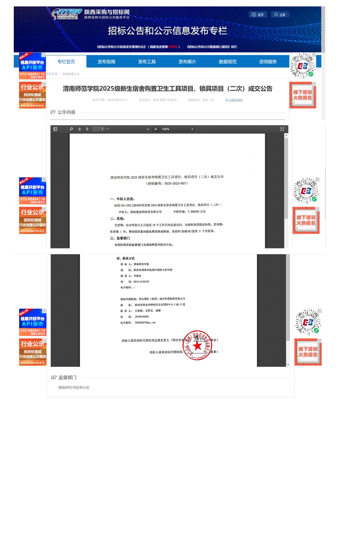 渭南师范学院2025级新生宿舍购置卫生工具项目、锁具项目(二次)成交公告