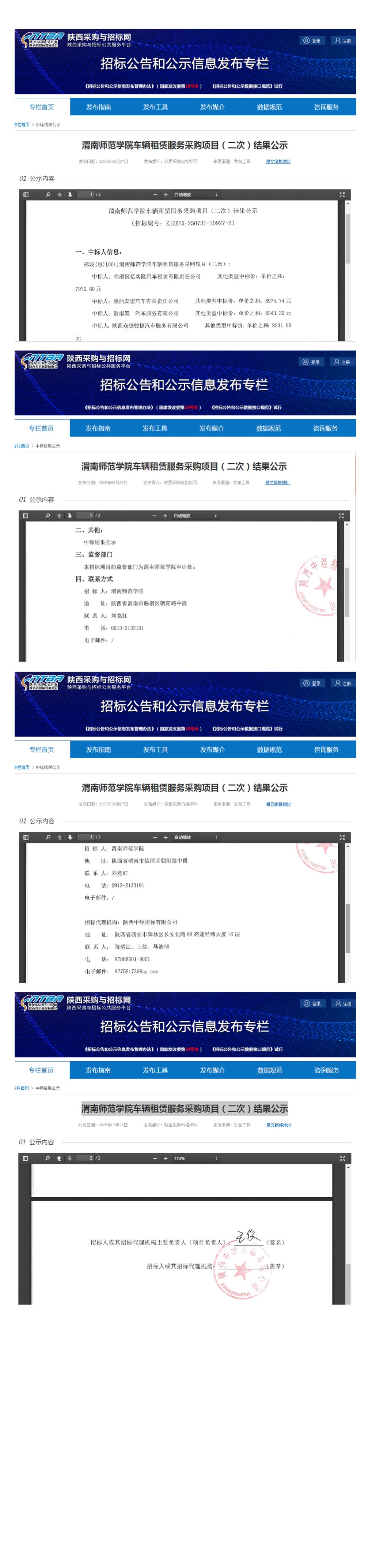 渭南师范学院车辆租赁服务采购项目(二次)结果公示