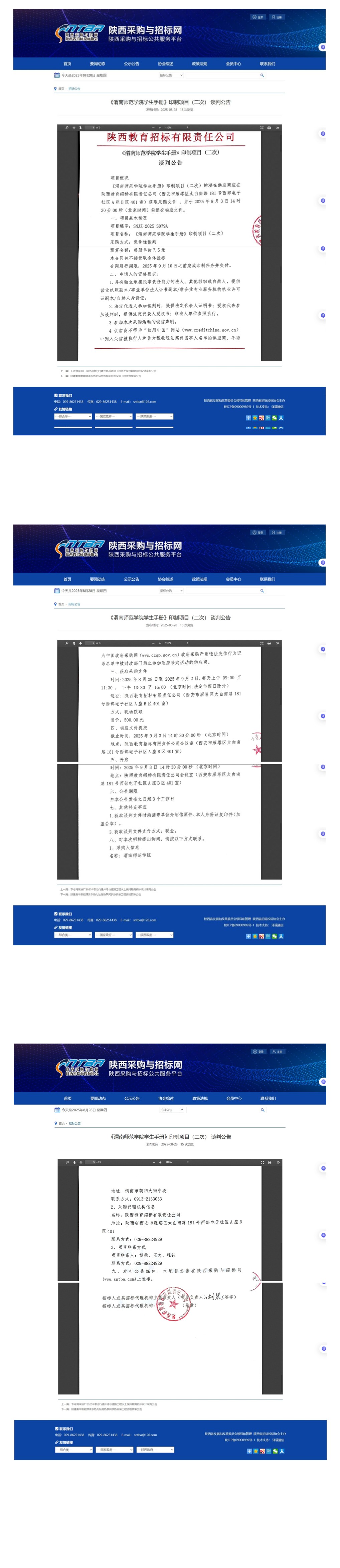《渭南师范学院学生手册》印制项目(二次) 谈判公告