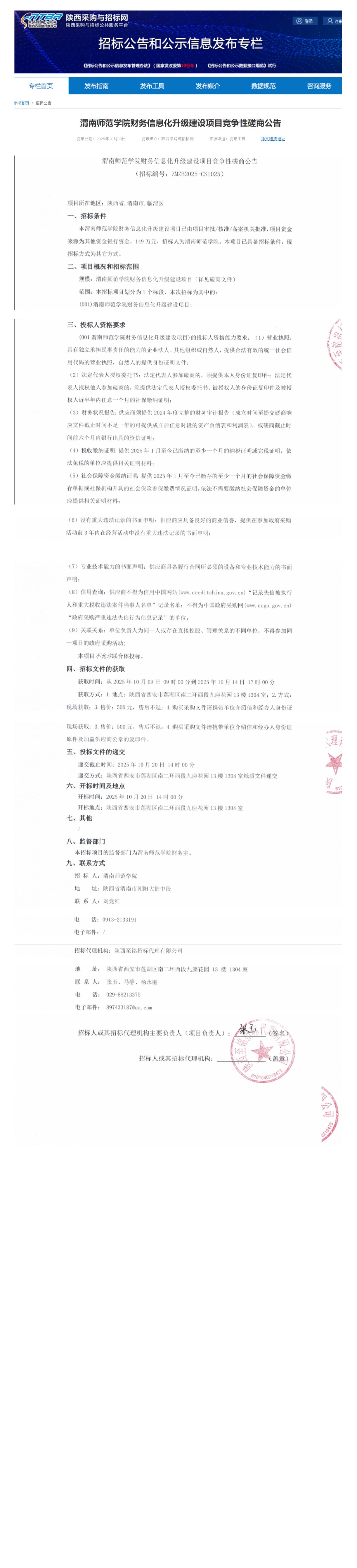 渭南师范学院财务信息化升级建设项目竞争性磋商公告