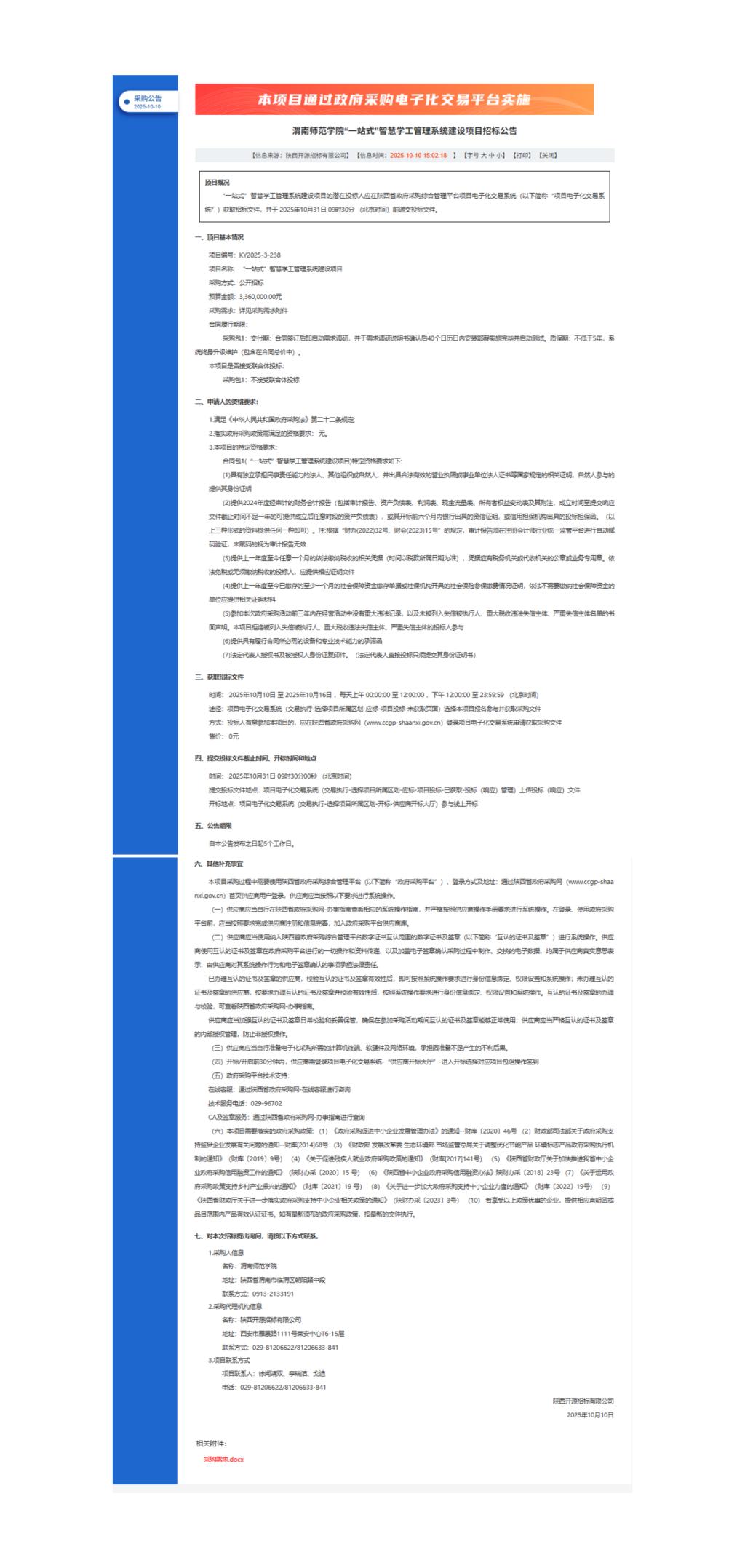 渭南师范学院“一站式”智慧学工管理系统建设项目招标公告