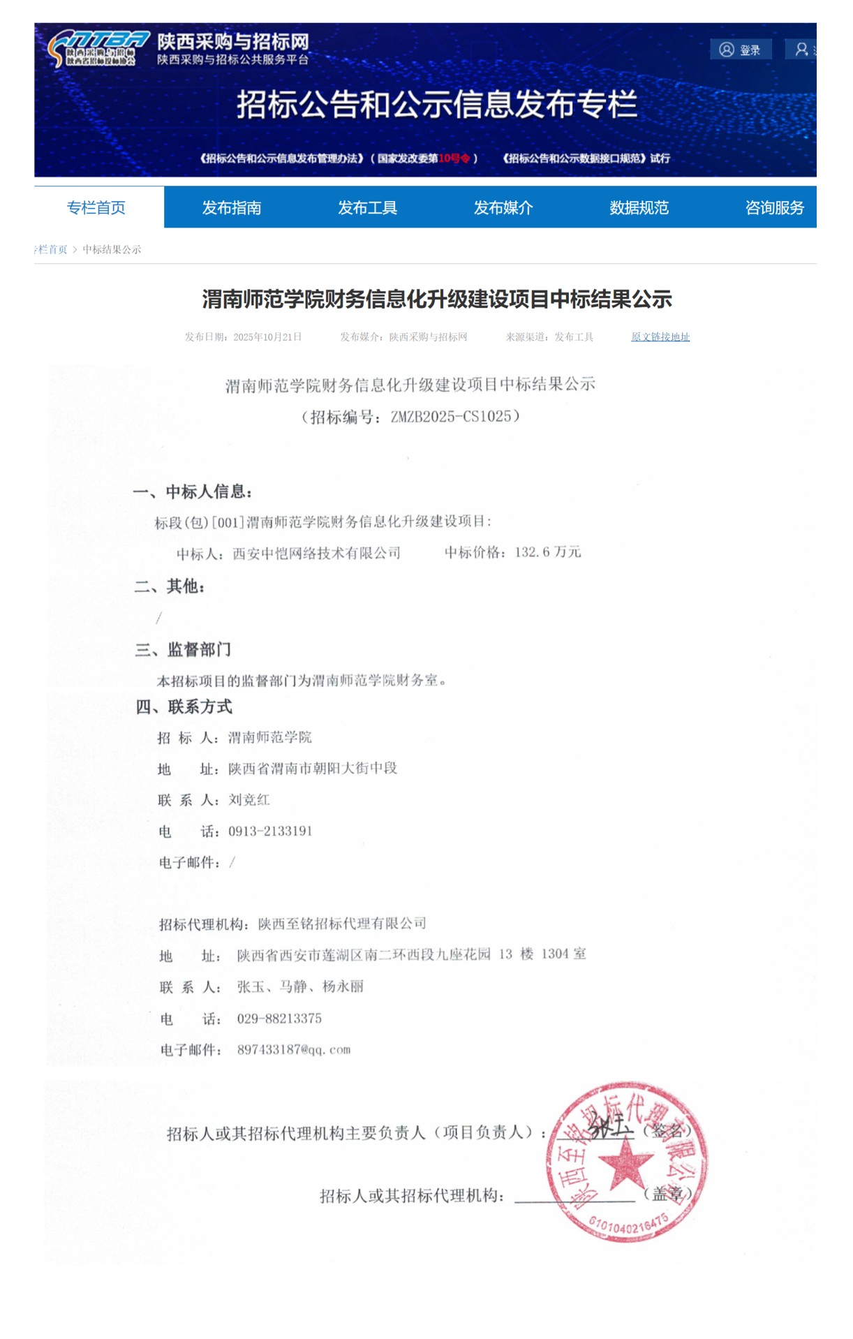渭南师范学院财务信息化升级建设项目中标结果公示