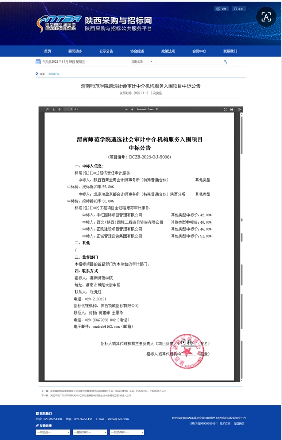 渭南师范学院遴选社会审计中介机构服务入围项目中标公告