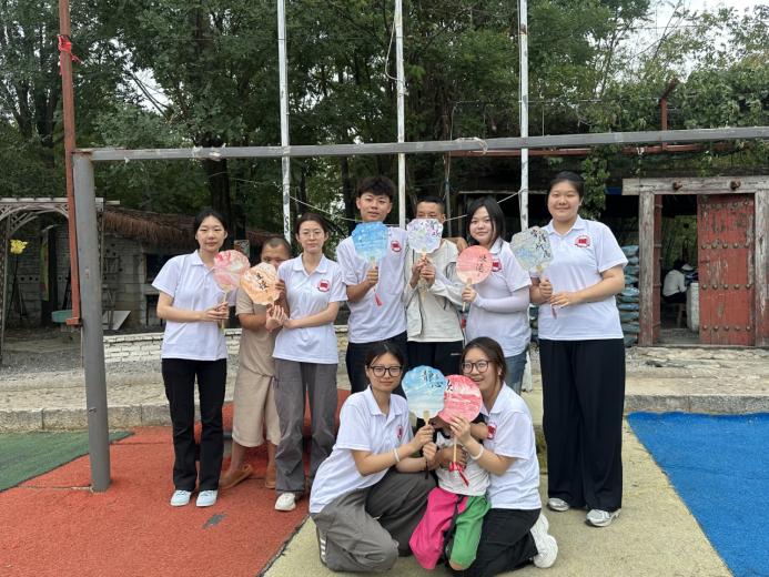 近日,渭南师范学院莫斯科艺术学院“心系折翼天使 用爱共助成长”社会实践团走进鄠邑区残障人士农疗基地,开展了一场以非遗文化体验为核心的活动。依托学院“丝路艺创”辅导员工作室联合创新的新课程“非遗小课堂”,实践团为基地的孩子们带来了漆扇绘制、青花瓷贴画创作、彩绘葫芦及扎染等丰富多样的体验项目,用艺术之美传递温暖与力量。