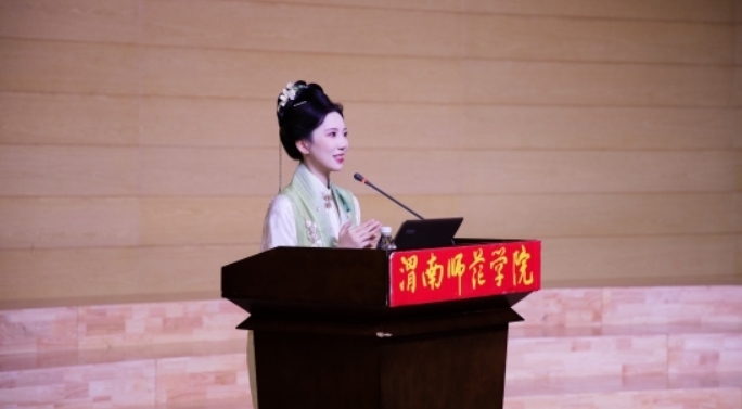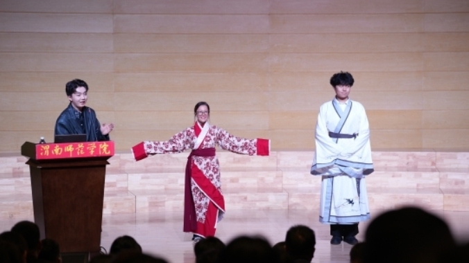 10月30日晚,渭南师范学院莫斯科艺术学院“丝路艺创”辅导员工作室开学第一课——“中华优秀传统文化进校园”活动在逸夫楼音乐厅精彩开讲。特邀优秀校友国风达人“皮卡晨”冯佳晨、李白扮演者高鑫、子虞三位嘉宾齐聚一堂,以沉浸式、互动式的体验,为现场师生奉上了一场传统文化盛宴。