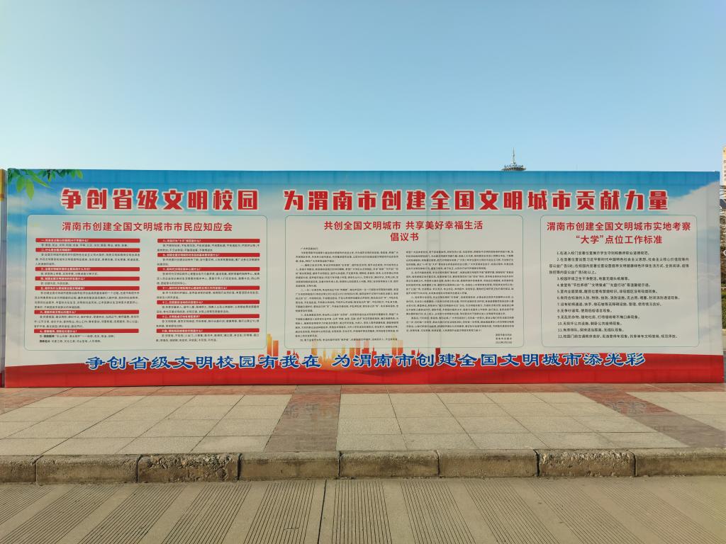 整洁优美的校园环境、丰富多彩的校园生活、气息浓郁的校园文化,还有随处可见朝气蓬勃、举止文明的师生……漫步在渭南师范学院校园中,有琅琅读书声,优美校园环境,浓厚文化氛围,更有浸润人心的文明之风,校园内文明之风扑面而来。橱窗文化长廊以中国梦、习近平总书记金句、社会主义核心价值观为主要内容,既有深刻的思想内涵,又体现了校园思政文化特色。校园内,每面墙、每条路都是“无言的教师”,中外文化科技名人名言、励志标语等匾牌已成为一道亮丽的风景线,营造出浓郁的书香氛围……这是学校文明创建工作的部分缩影。