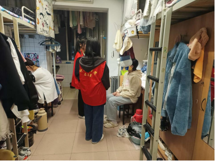 辅导员一行还重点检查了宿舍卫生和安全用电等情况,叮嘱同学们注意开窗通风、环境卫生、保证床单被褥及生活用具整洁,严禁宿舍使用大功率电器行为。为更好地预防春季流行病,辅导员向同学们宣传了相关知识,同时对食堂用餐、疾病治疗、请假外出等情况提出了具体要求,并鼓励大家放下手机、走出宿舍、走向操场,加强身体锻炼,提高身体素质。毕业班辅导员与毕业生在毕业设计、就业、考研复试等方面进行了深入交流,针对存在的困难提出了合理建议,同时动员学生党员引导同学树立正确的就业观。