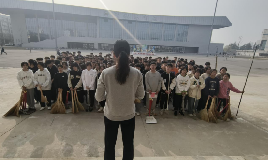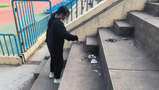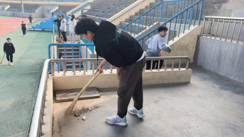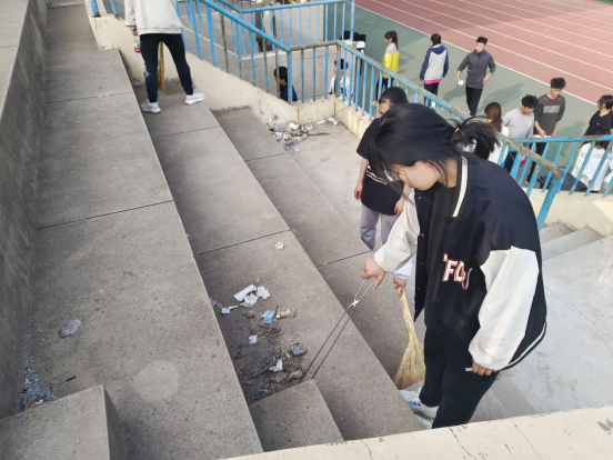 接下来,朱颖妮进行了劳动分工,辅导员组织以班为单位,按照区域分头行动,强调绿化带里的垃圾、树叶,田径场看台一周的纸屑、烟头等都要彻底打扫。