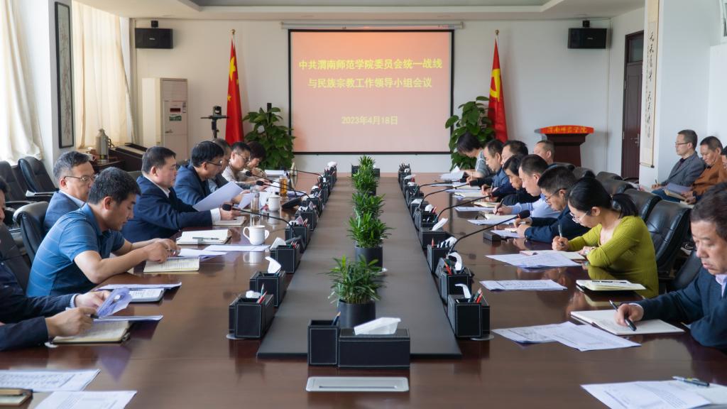 4月18日,学校召开中共渭南师范学院委员会统一战线与民族宗教工作领导小组会议。党委书记卓宇出席会议并讲话,党委副书记、统战部部长韩小卫主持会议,领导小组全体成员参加会议。