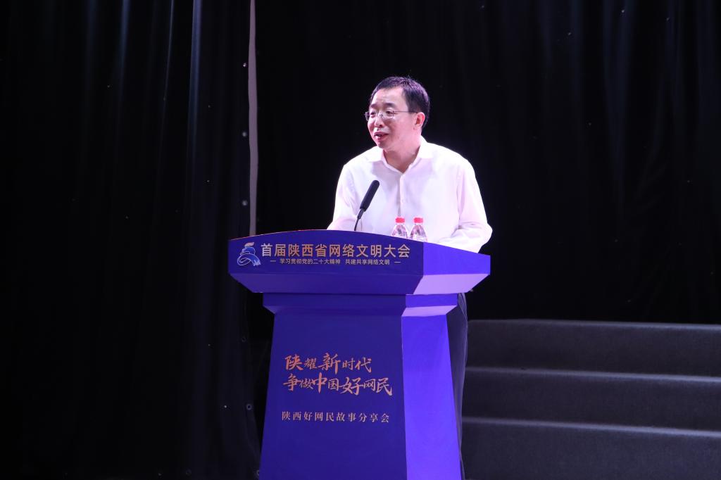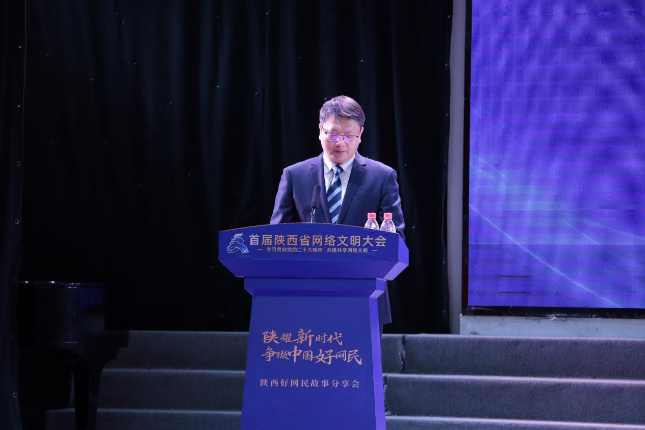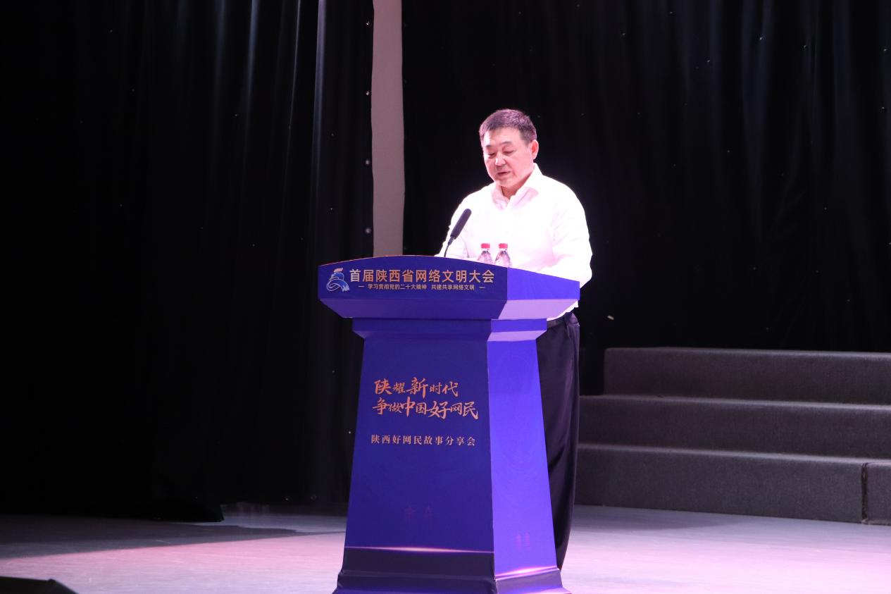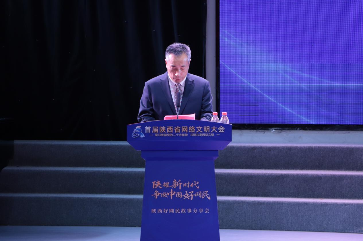 5月30日下午,“陕”耀新时代·争做中国好网民——陕西好网民故事分享会在我校陶然楼演艺厅开讲。陕西省委网信办主任柯昌万,渭南市政府副市长张开,党的二十大代表、西安易俗社有限公司党支部书记、总经理惠敏莉,陕西省广播电视局总工程师闫东伟,我校党委书记卓宇、校长张守华等有关领导以及延安市、汉中市、铜川市和渭南市有关同志出席活动。