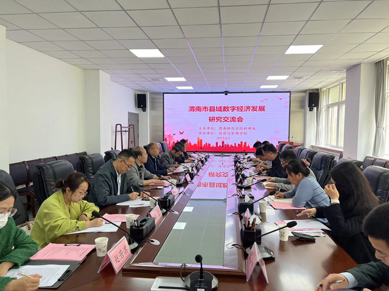 6月5日下午,由我校科学研究处主办、经济与管理学院承办的渭南市县域数字经济发展研究交流会在我校举行。会议邀请了渭南市互联网协会、渭南市文旅局、渭南农投集团乡村振兴产业开发有限公司及我校的教授、博士代表等专家参会。会议由经济与管理学院院长李富荣主持。