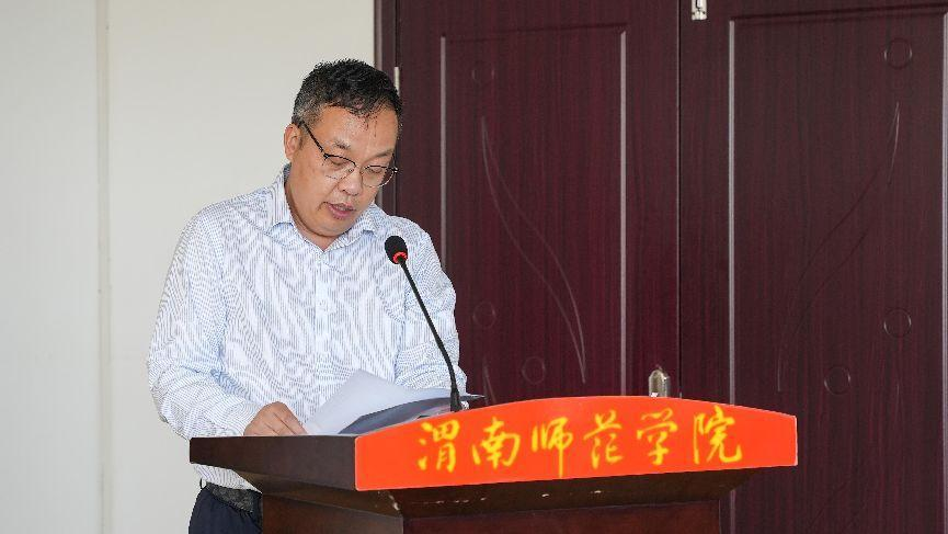 党委委员、宣传部部长李明敏介绍了“渭南师范学院”学习强国号五个栏目的设置及稿件审发要求,同时梳理了我校四年多来周密部署、积极创新探索学习方式和组织形式,在广大师生中强力推进“学习强国”推广使用的情况。
