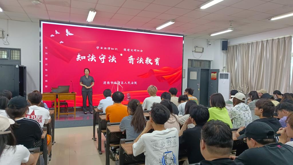 6月16日上午,临渭区人民法院田青法官应邀走进我校,在1101教室为师生代表作题为《知法守法 普法教育》的专题讲座。讲座由团委、马克思主义学院共同主办,马克思主义学院副院长单剑峰主持。