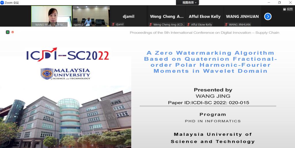 我校计算机学院王晶博士(在读)的论文被组委会录用,并受邀参加了此次学术会议。在会议上,王晶老师以《A Zero Watermarking Algorithm Based on Quaternion Fractional-order Polar Harmonic-Fourier Moments in Wavelet Domain》为题作了交流发言,发言受到了国内外学者的广泛关注。本次教师参加国际性学术交流活动,是计算机学院深入开展科研队伍建设、广泛进行国际学术交流的成果之一,教师通过参与国际学术交流,开拓了视野,同时也在这一国际学术平台发出了自己的声音。(通讯员 王晶 审核人 哈渭涛)