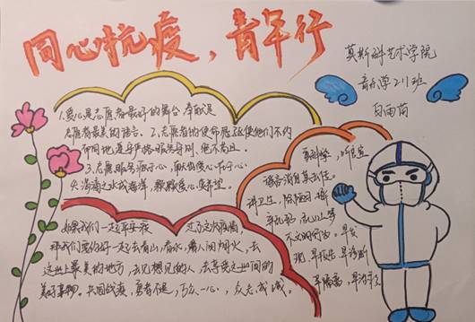 11月28日,莫斯科艺术学院的学子们用自己的方式加入抗疫,以“‘艺’起努力 齐心抗疫”为主题绘制手抄报,活动开展以来,同学们踊跃参与,围绕宣传普及防疫知识、致敬一线志愿者等题材进行创作,传递抗疫力量。
