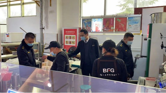 2月16日,临渭区市场监督管理局站南所副所长任磊带队对我校朝阳校区学生餐厅进行春季食品安全专项检查,确保校园食品安全。后勤服务中心饮食管理科负责同志、餐厅食品安全员、管理员及各餐饮公司经理陪同检查。