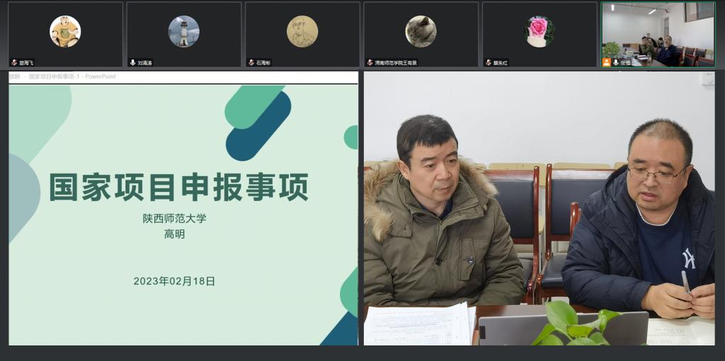 2月18日下午,美术学院召开国家社科基金艺术学项目申报专家指导会,特邀陕西师范大学美术学院博士生导师高明教授进行项目申报事项讲解和指导,会议采取线上与线下相结合的方式,副校长卢爱刚在会后与高明教授进行了座谈。美术学院院长殷晓克、科研处副处长王有景、王志平以及项目申报教师和部分青年教师参加了会议。会议由美术学院副院长刘涌涛主持。