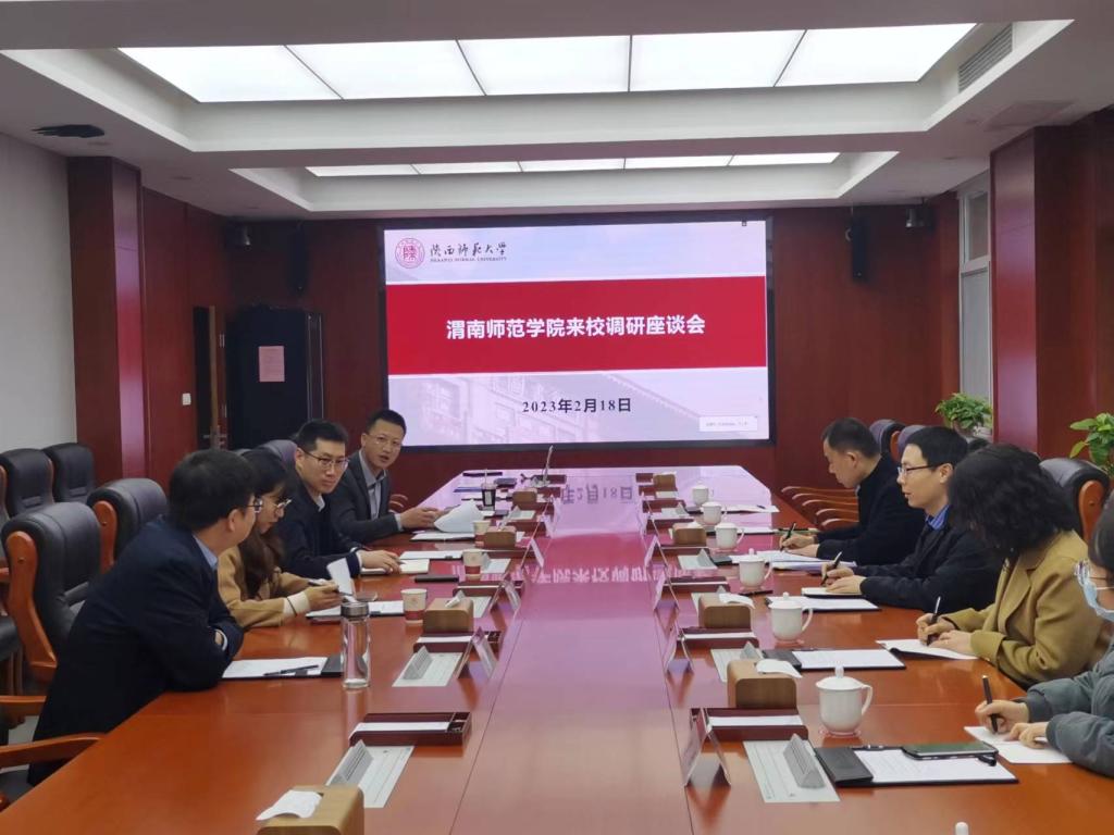 2月18日,我校党政办公室主任张勤恳一行7人到陕西师范大学进行工作调研与业务交流。座谈会上,陕师大党委校长办公室副主任罗卫涛详细介绍了党委校长办公室的组织机构、主要职能以及队伍建设等方面的工作经验,双方就办公自动化建设、文秘工作、行政接待、督察督办、会议管理、档案管理等方面的工作进行了深入交流,并就新时期如何高质量做好办公室工作交换了看法。张勤恳表示此次到陕师大调研交流收获颇丰,为渭南师范学院党政办公室后续工作的开展提供了宝贵经验和有益借鉴。