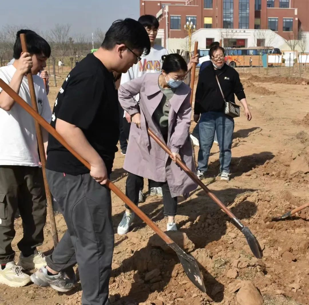 阳春三月,万物复苏。一年一度的植树节如期而至。为增强我院师生绿色环保意识,共建绿色文明校园。3月14日,物理与电气工程学院院长、部分教师、辅导员及学生代表等前往富平校区参加义务植树活动,以实际行动践行习近平生态文明思想,为校园生态环境建设做出贡献。